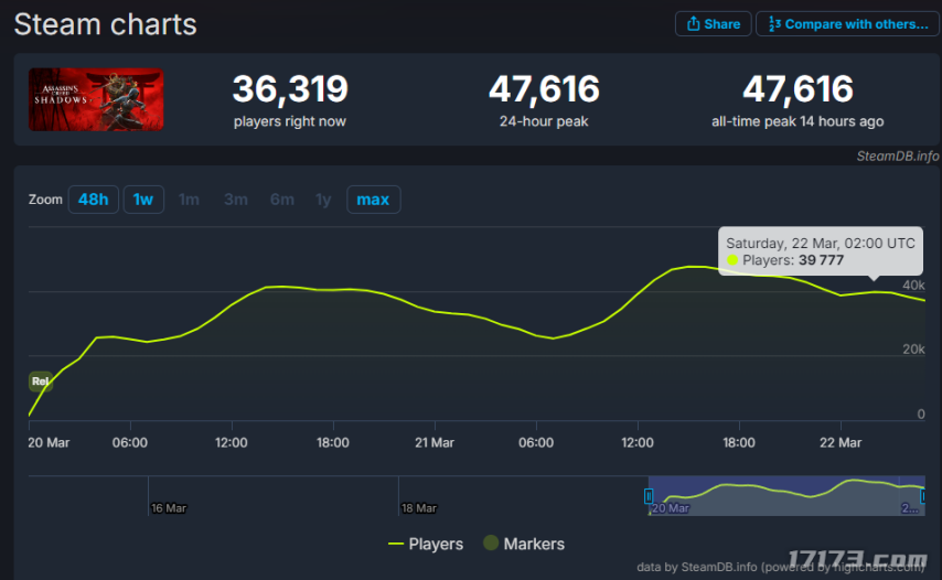 好在现在看来育碧算是暂时活了下来,《刺客信条:影》目前在Steam收获81%好评,SteamDB的玩家峰值也在4w7,不算多也不算少,总之算是活下来了。好在现在看来育碧算是暂时活了下来,《刺客信条:影》目前在Steam收获81%好评,SteamDB的玩家峰值也在4w7,不算多也不算少,总之算是活下来了。