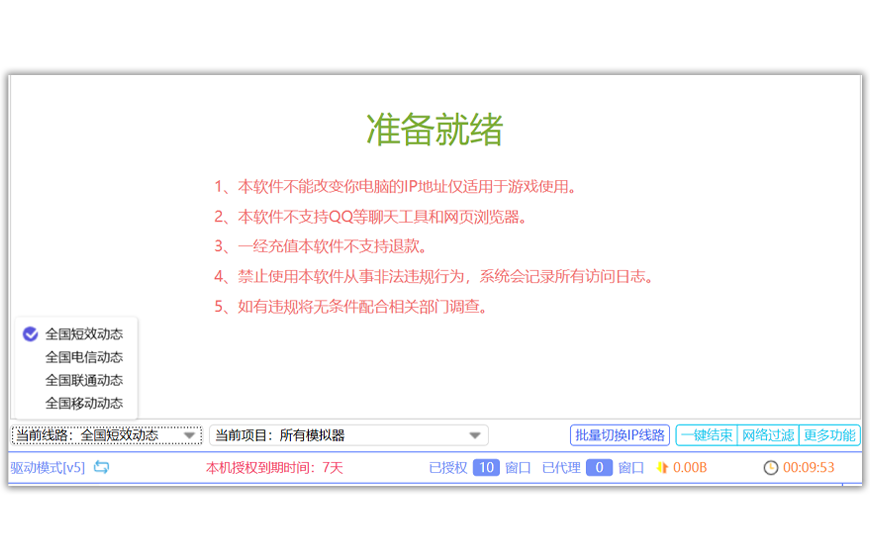 全局代理或者自定义进程代理,按机器和IP数收费,价格便宜实惠,有会员折扣、时长折扣,所有折扣可叠加,IP低至0.67元/条/月。
