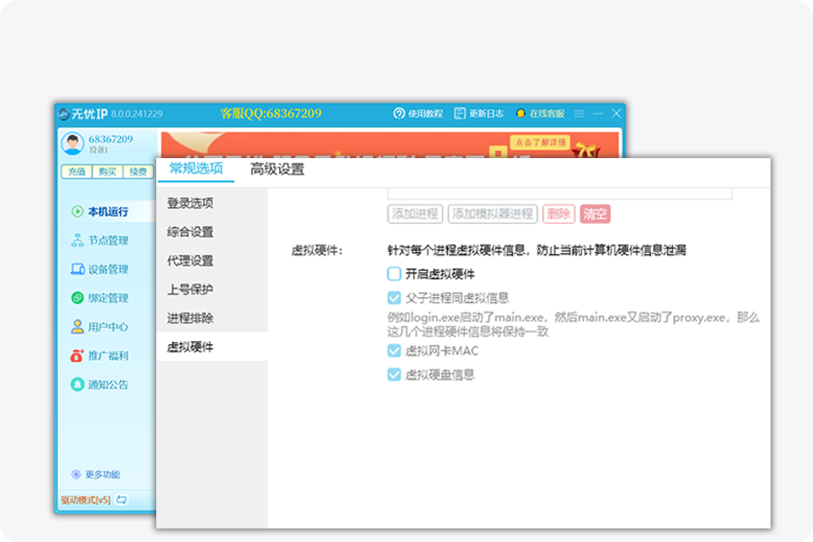 独家研发驱动级虚拟硬件,可虚拟MAC网卡、硬盘、CPU、主板等序列号,多开防封。