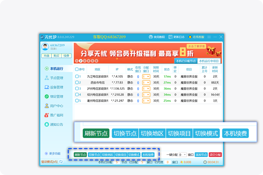 专注游戏代理IP软件,全新升级版本,运行更稳定、地区更丰富、操作更便捷、折扣可叠加,全球200+地区、千款游戏支持、IP任意切换、项目独享使用、售后更加及时,满足用户各类使用需求所有产品账号通用,一个账号不限电脑同时登录,无需注册多个账号 注意:请勿用于非法用途!